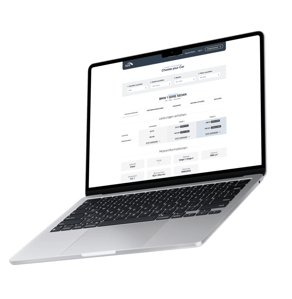 Sie wissen es noch nicht und möchten unseren Tuning-Konfigurator auf Ihrer Website ausprobieren? Über den untenstehenden Link können Sie Ihre persönliche Demoversion absolut kostenlos testen.